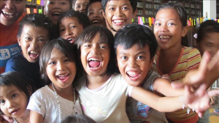 Today in a corner of the library, Maria enjoys a heart-filled laugh with Beth, as the SOS volunteer brings the story of Beauty and the Beast to life. “Maria was a very different child when I first met with her,” says Maridel Inoc. The SOS Children’s Villages Social Worker describes why Typhoon Haiyan will remain etched forever in the mind of the eight-year-old. “Three massive waves hit her home. She managed to hold on after the first one. The second wave swept her off her feet, but she managed to swim back. Just as she caught her breath she was again swept away. This time the wave carried her to the first floor of the house; here she held on a concrete column. Miraculously, her physical injuries were relatively minor, but there is pain of a different kind.”