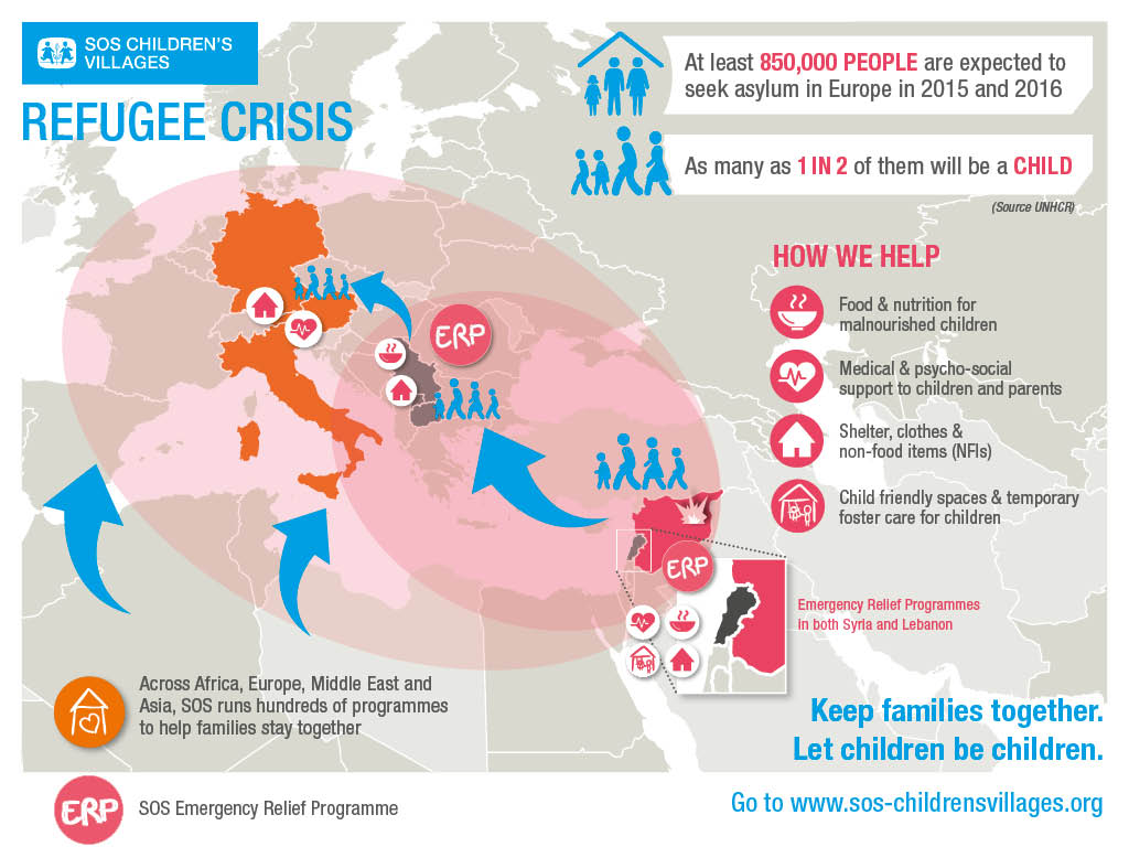 SOS Children’s Villages International is continuing to respond in every possible way to the global humanitarian crisis of refugees and displaced people. Emergency response activities are underway in the Middle East and across Europe, bringing much needed relief to refugee children and their families.