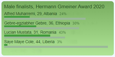 This year, some 60 people were nominated, eight of whom - four women and four men - were selected as finalists. A public online vote is meant to typically yield two winners, but this year the Board of the Hermann Gmeiner Academy has decided to make an exception. For more than 20 days, during the voting phase, an internet blackout in Ethiopia meant people from that country were not able vote, putting one of the men’s finalists at a disadvantage. Therefore, the Board has decided to name three winners this year, honouring the two top vote getters in the men’s category.