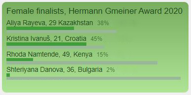We also extend our warm congratulations to the women’s finalists - Aliya Rayeva of Kazakhstan, Rhoda Namtende of Kenya, and Shteriyana Danova of Bulgaria – and the men’s finalists - Alfred Muharremi of Albania and Saye-Maye Cole of Liberia. You have inspired so many people with your achievements and personal stories. For us, you are all winners.