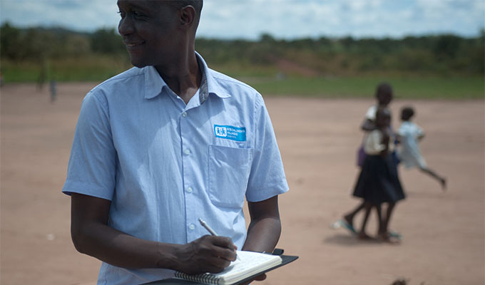 Louis Apenya, Programme Director for SOS Children’s Village Entebbe, visits World’s View to see what programmes are available for pre-school children. In many cases, early childhood development classes are led by untrained volunteers from the refugee community.