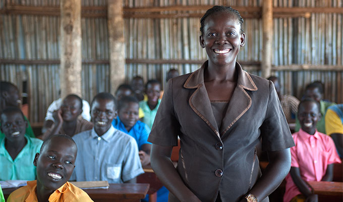 Ms Aloyo Oryang is head of World’s View Primary School at the Palabek refugee settlement. An estimated 37,000 South Sudanese settled here between April and late 2017, escaping violence and food insecurity at home.