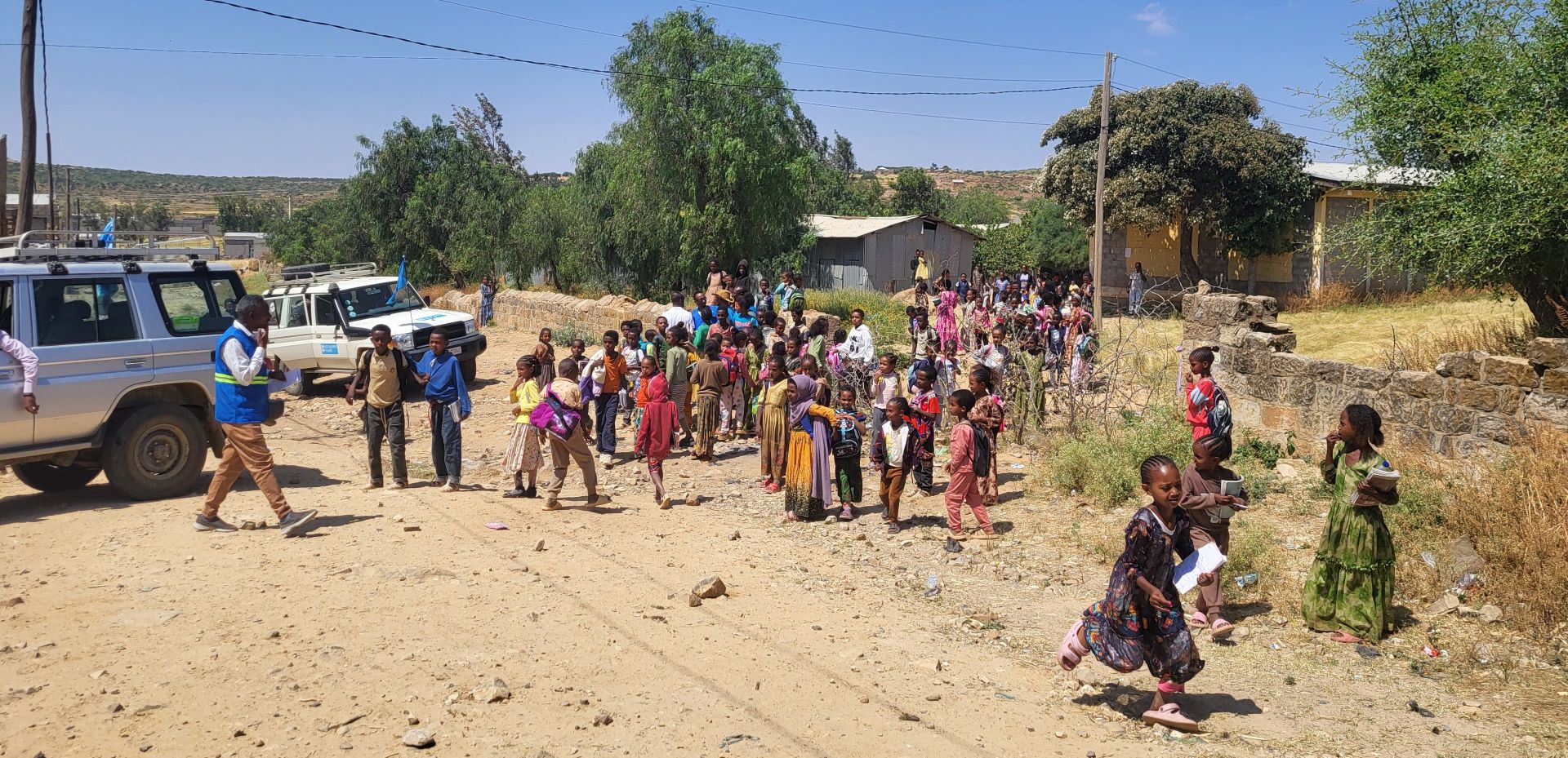 Alongside household-level support, the programme works closely with local schools and communities to help children return to safe learning environments. As part of the education component, 2,900 children affected by the conflict receive education materials, and schools damaged or disrupted by the conflict are supported to resume learning activities.