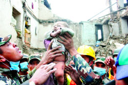 On the morning after the earthquake, I went to the site of a collapsed home where Nepali soldiers were trying to save a trapped boy named Sonish Awal. They could hear the child but not find him. I asked if I could help … and I directed traffic and asked people not to make noise so that the soldiers could hear the baby crying to make it easier to find him.