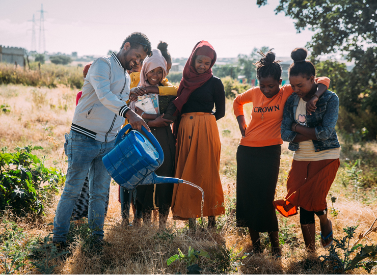In Eteya, Ethiopia, young people plant trees, learn irrigation techniques and cultivation methods to adapt to the changing climate. They pass on their knowledge to their parents and the village community.
